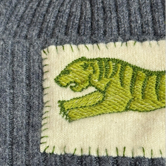 Embroidered Tiger Beanie - Charcoal Merino Wool Beanie - Winter Hat - Luxury Beanie - Animal Embroidery - Unique Gift