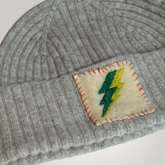 Embroidered Lightning Bolt Beanie - Grey Merino Wool Beanie - Winter Hat - Luxury Beanie - Unique Winter Accessories